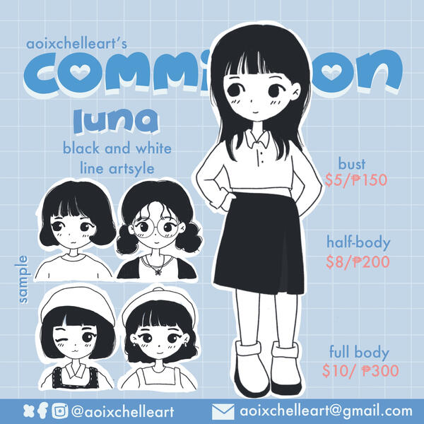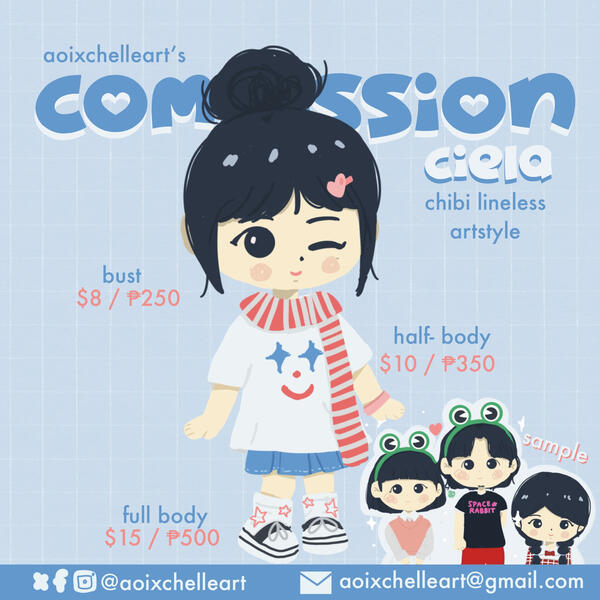 Hi! I'm currently open for commissions. If interested, click any of the buttons below to see info.
